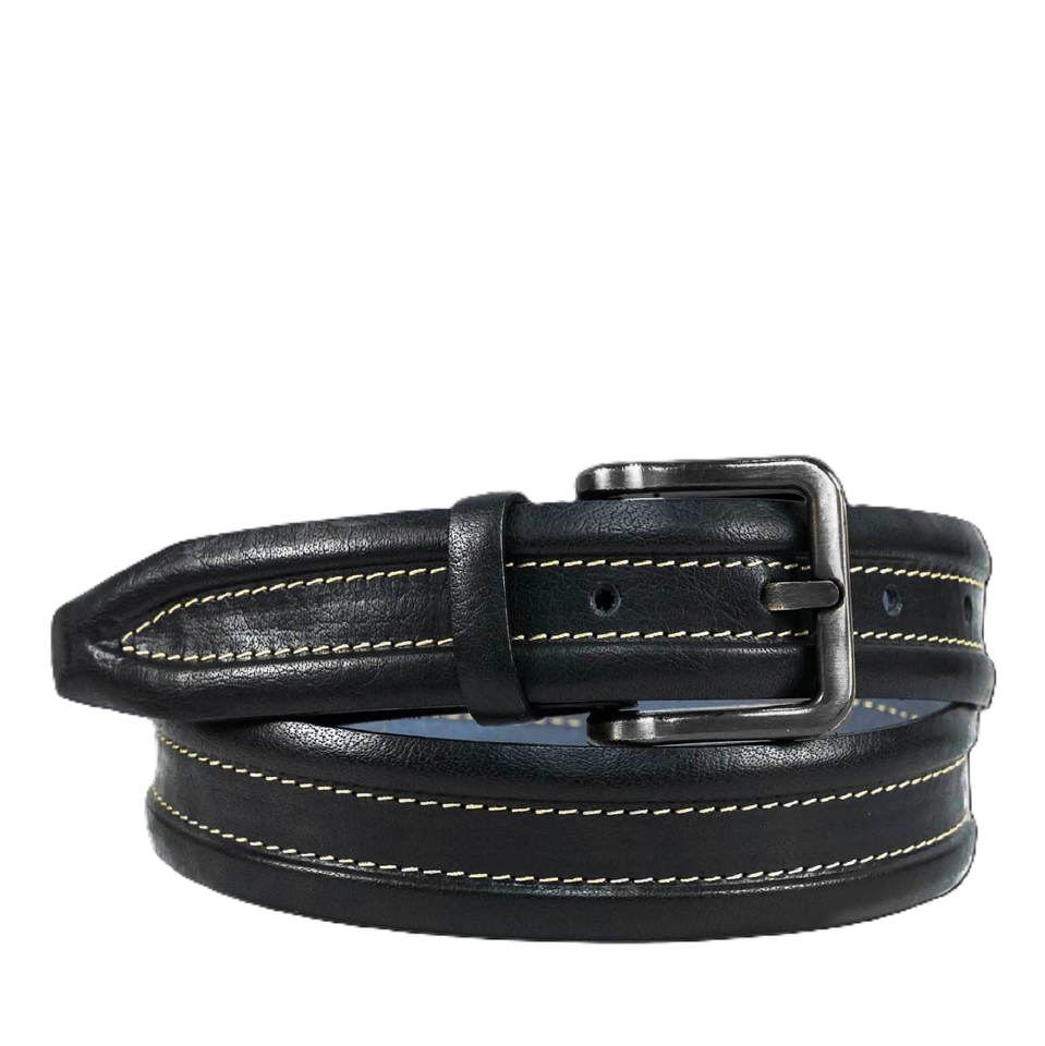 Nom du produit:Ceinture en cuir pour homme noire, bordure plume gaufrée - Fabriquée à la main.
