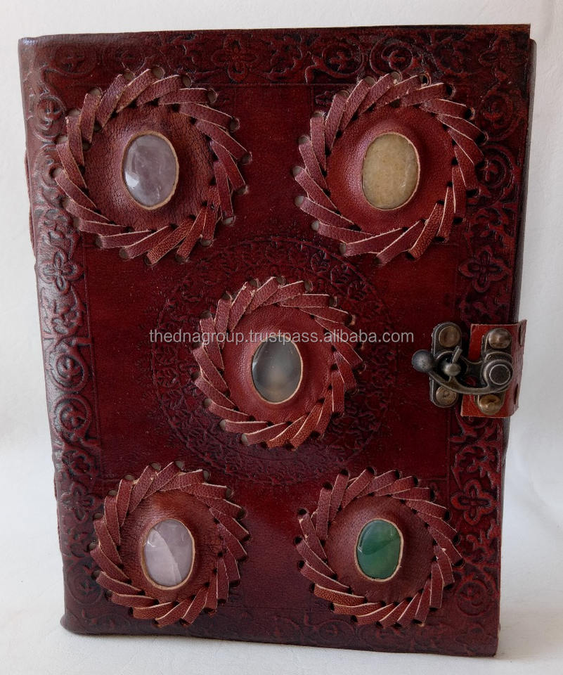 Journal en cuir gaufré taille B5 fait à la main pour le bureau ou les affaires fermeture de verrouillage sécurisée avec un design élégant 5 pierres pour les cadeaux