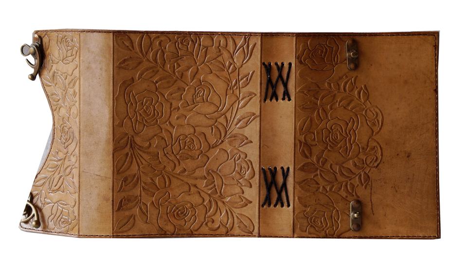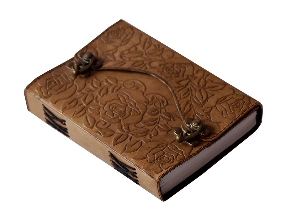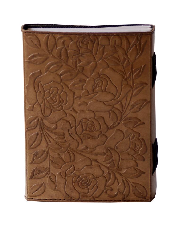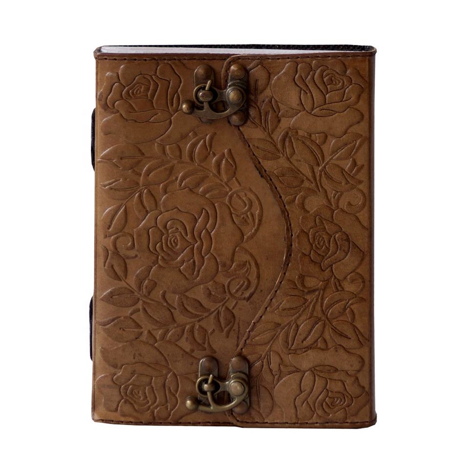 Carnet et journal en cuir fait main avec reliure spirale, motif rose et feuille vintage en relief – Idéal comme cadeau