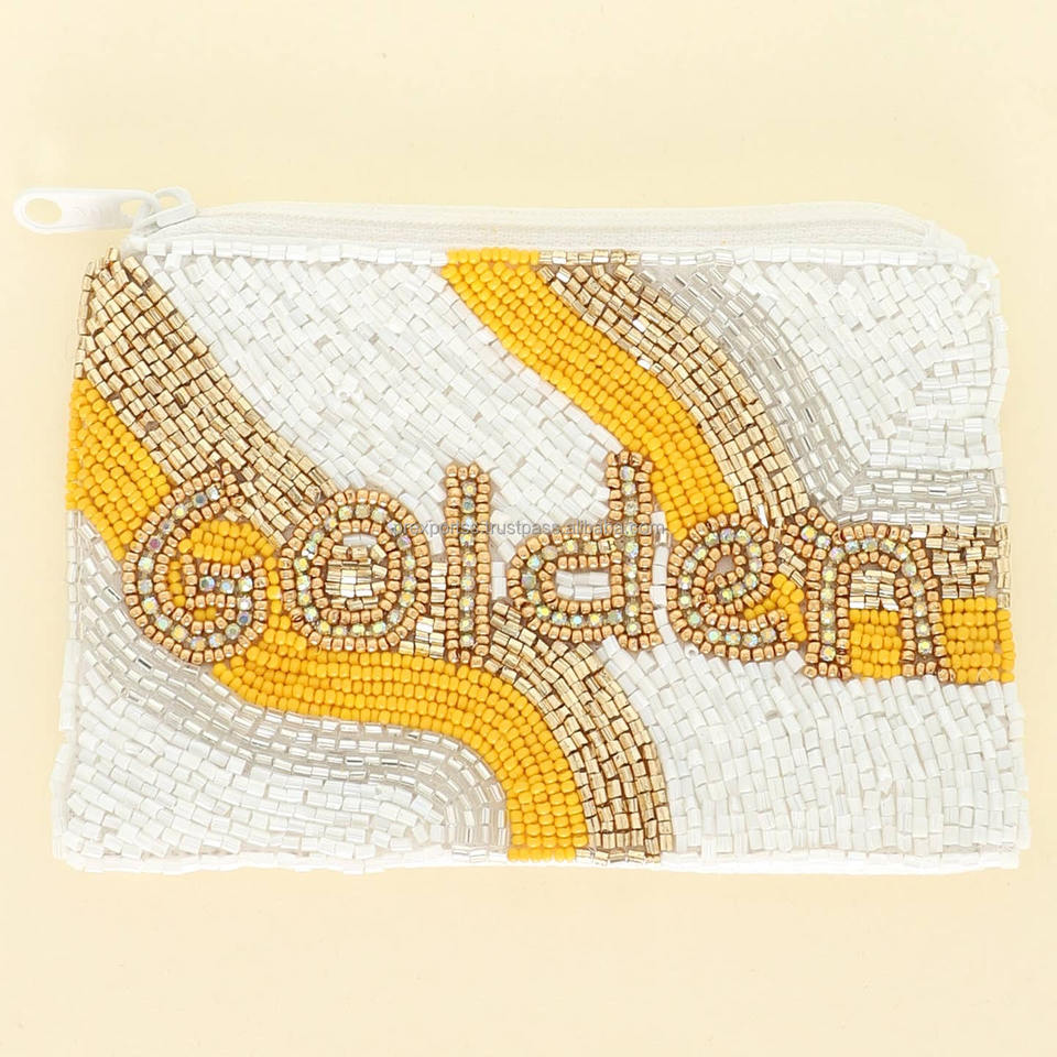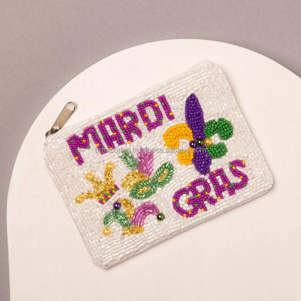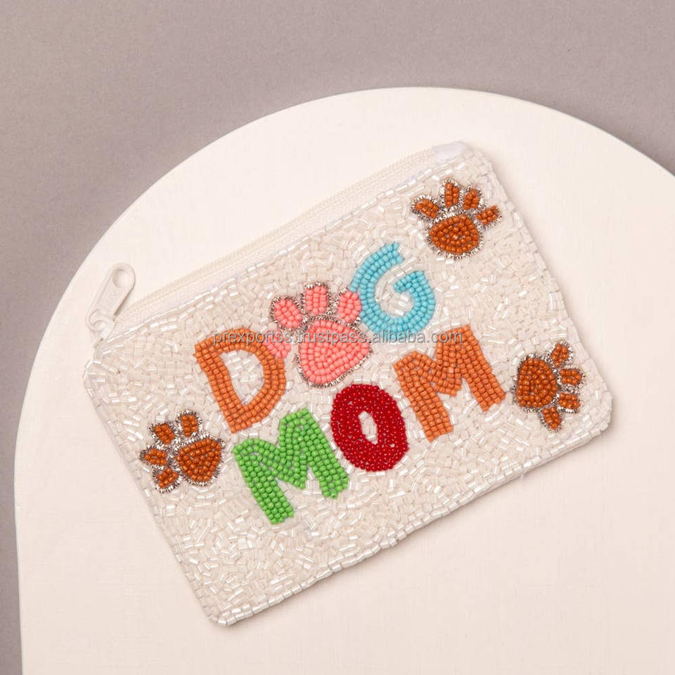 Pochette Cœur Brodé Fait Main Drapeau Américain Perles Rouge Blanc Bleu Sac à Fermeture Éclair en Verre Unisexe Portable Vente en Gros Patriotique