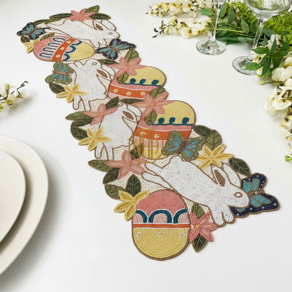 Chemin de table brodé à la main avec des perles, sous-plat, taille personnalisée, fournisseur d'exportation