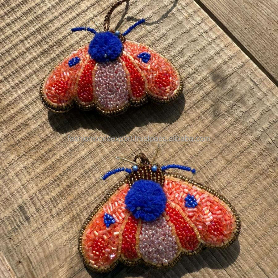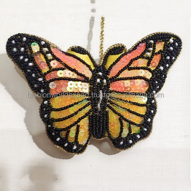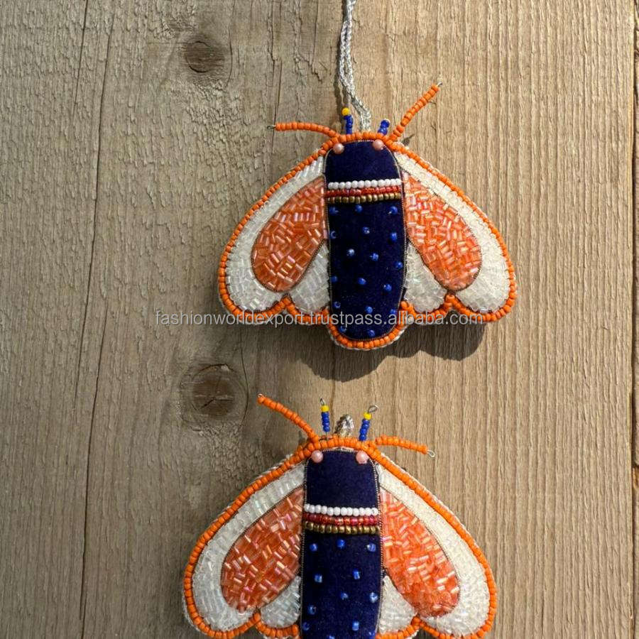 Ornement d'oiseau brodé à la main hirondelle colorée avec bleu vert et rouge détaillant unique suspendu pour Noël ou la décoration intérieure