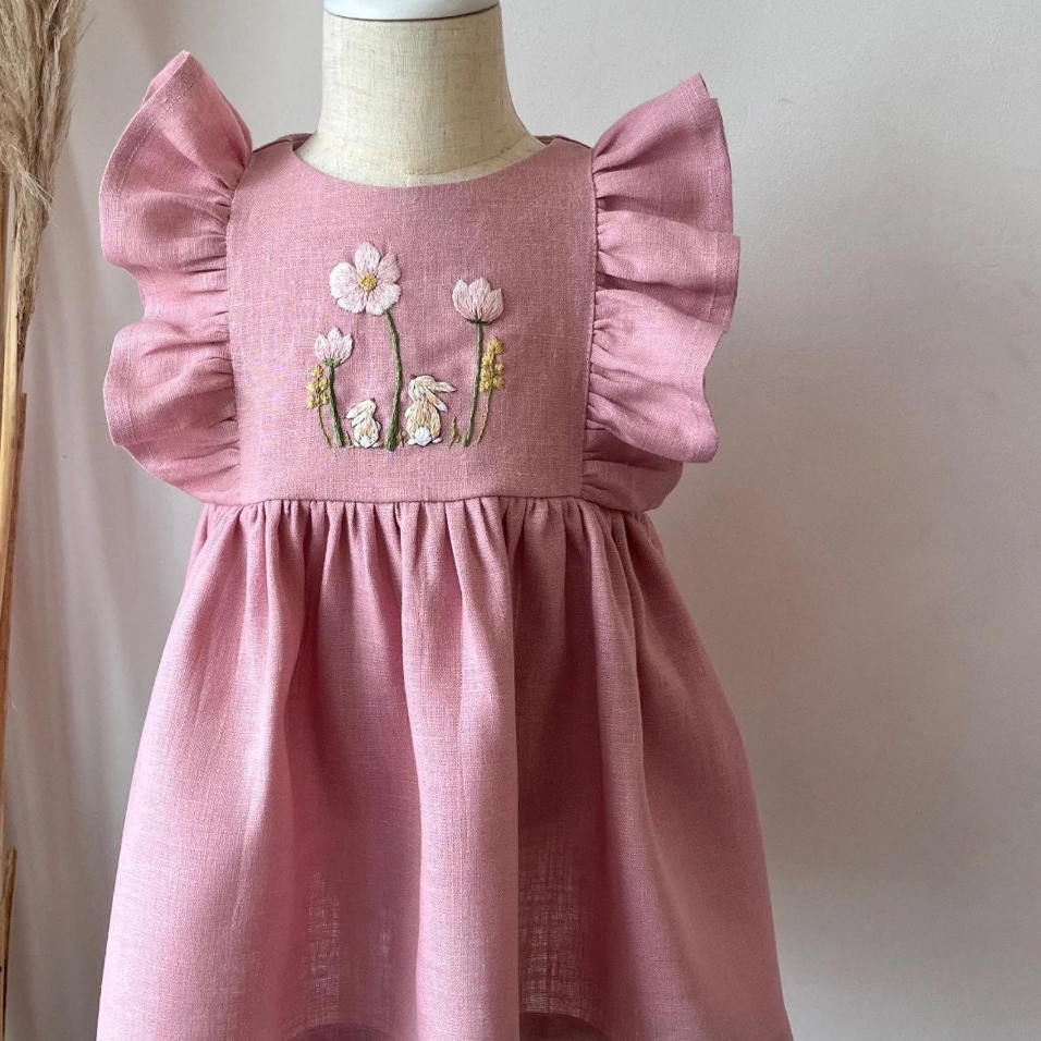 Robe brodée à la main en lin doux pour bébé fille Style décontracté pour le premier anniversaire des tout-petits OEM Made in Vietnam