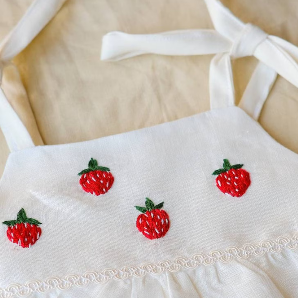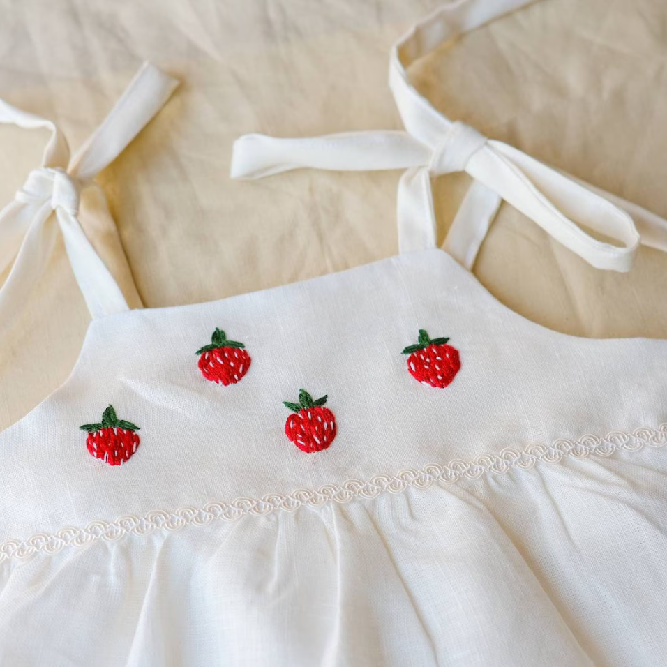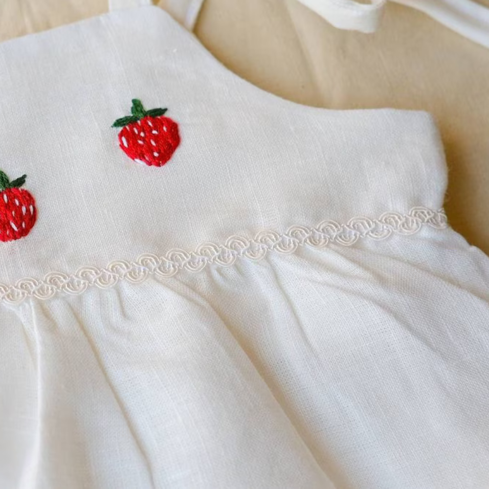 Robe brodée à la main en lin doux pour bébé fille Style décontracté pour le premier anniversaire des tout-petits OEM Made in Vietnam