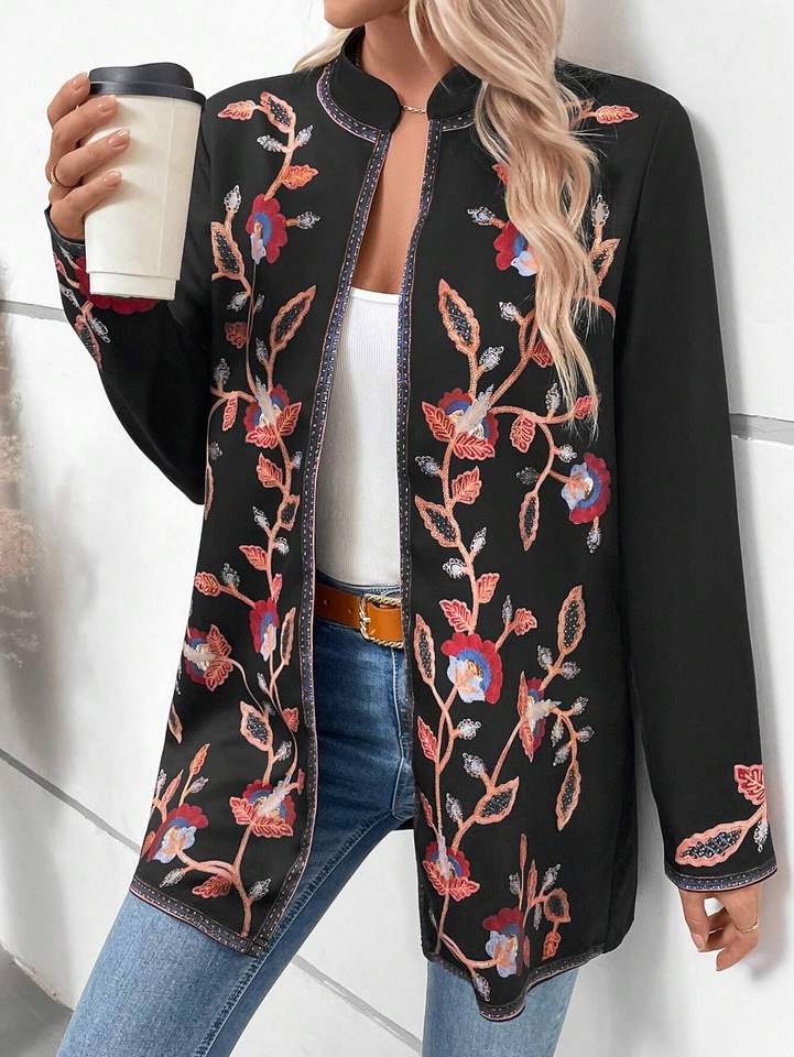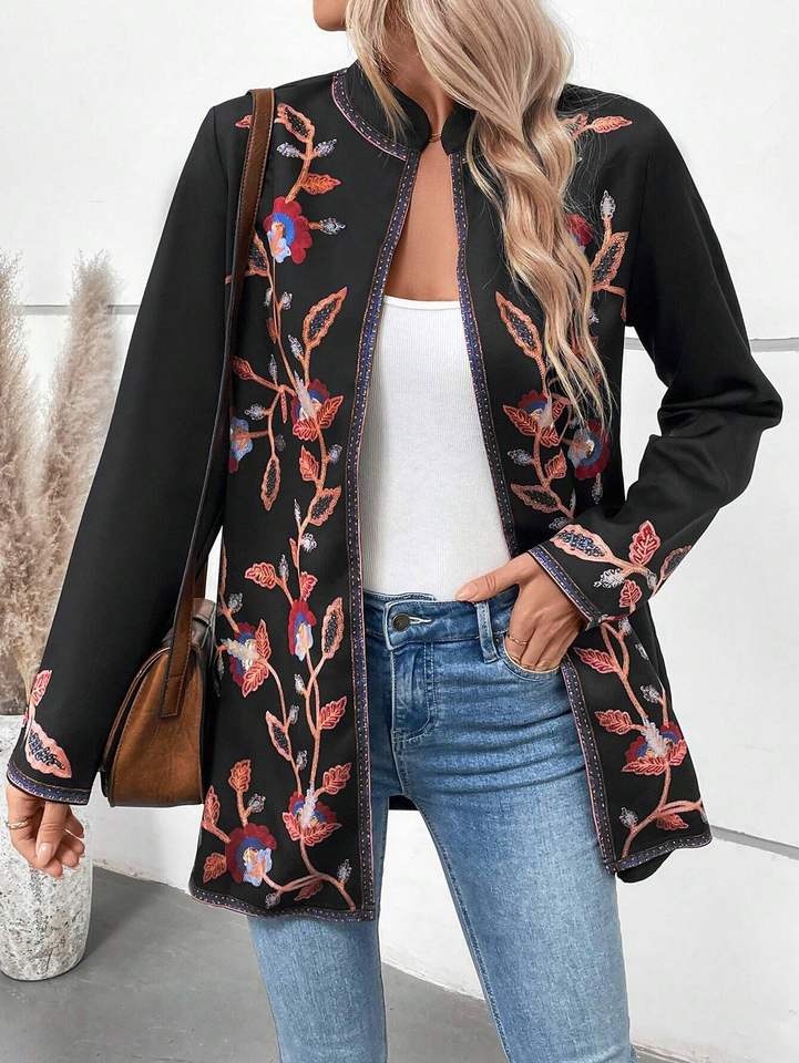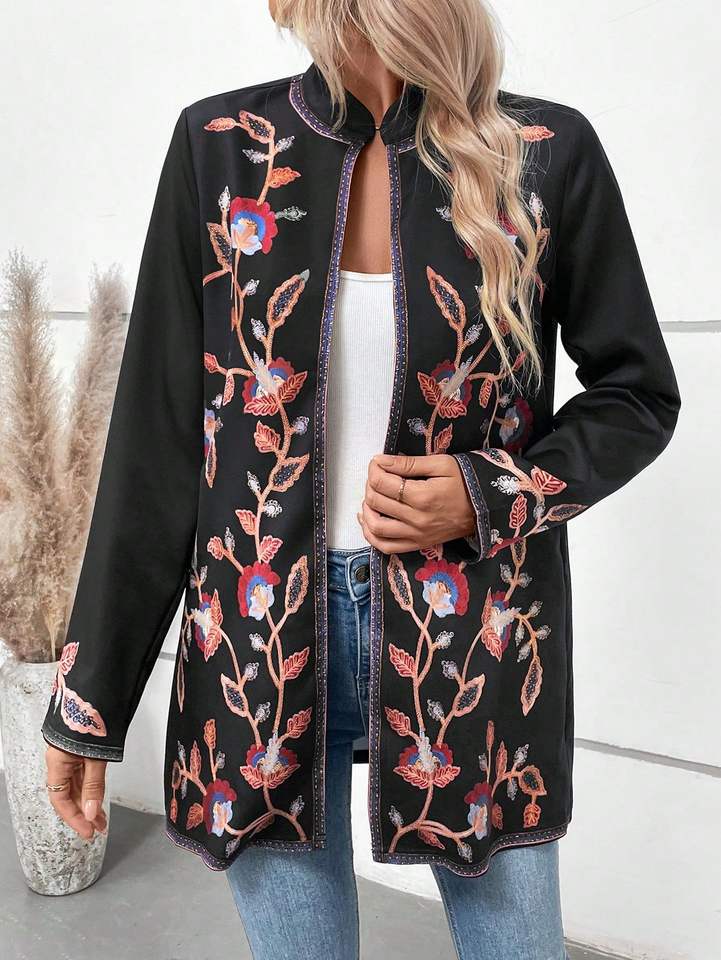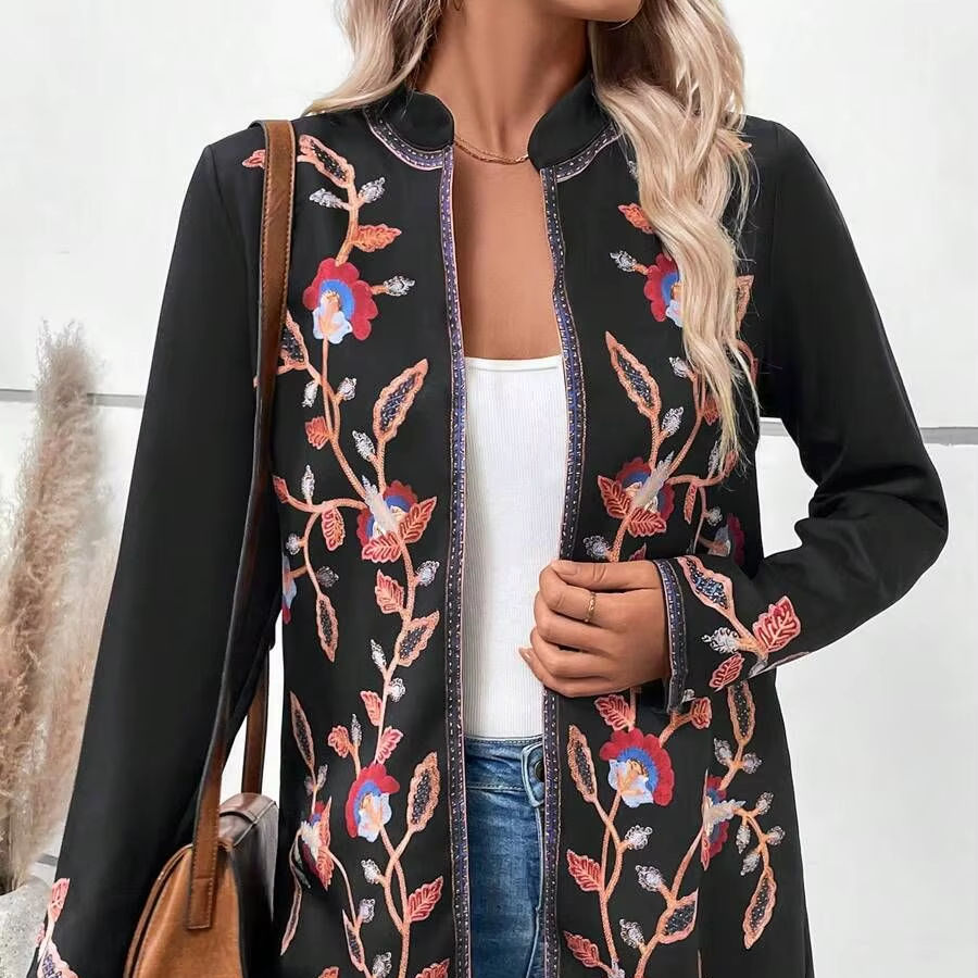 Veste matelassée en coton 100% écologique à fleurs pour femmes, broderie artisanale, automne-hiver, style décontracté, robe Suzani, bouton