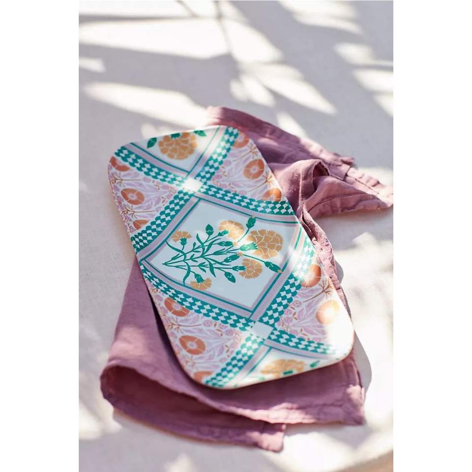 Ensemble de plateaux de service en métal émaillé faits à la main, imprimé floral décoratif, plateaux rectangulaires de grande taille pour la décoration de la maison, hôtel, restaurant, buffet