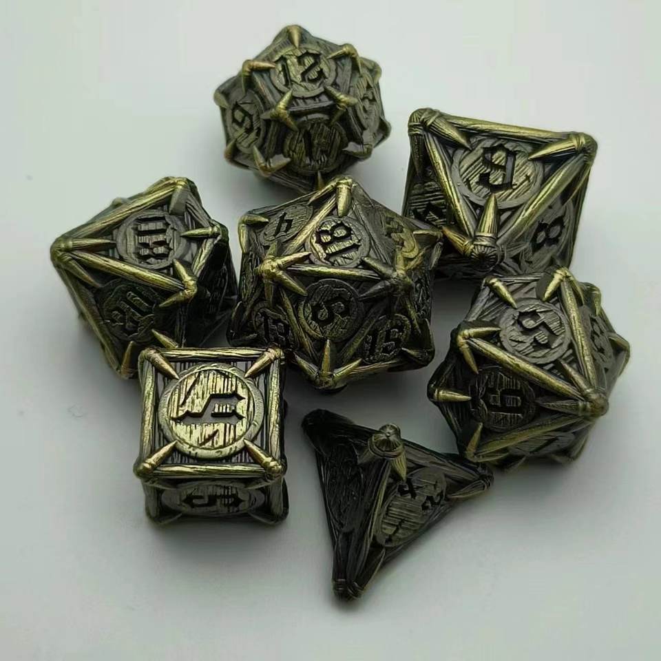 Piquet d'arbre polyédrique doré gravé à la main pour un jeu de dés en métal de 7 pièces pour le jeu de table Dungeons & Dragons