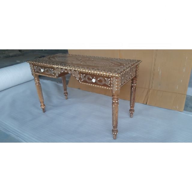 Table console d'entrée faite à la main avec incrustation d'os au design classique bois de teck recyclé finition naturelle pour le rangement décoratif de la chambre à coucher