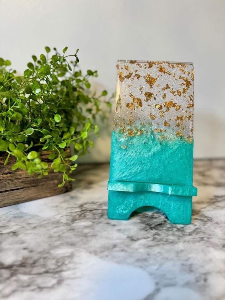 Support de téléphone en résine époxy fait main, support de bureau moderne décoratif pour smartphone, pour bureau et maison - Craftera Exports