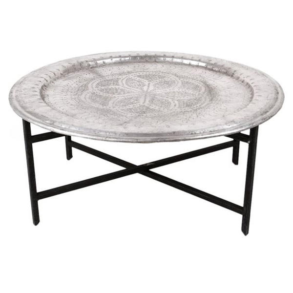 Conception de gravure à la main Table basse décorative en métal Base en métal Meubles de salon Table marocaine plaquée cuivre