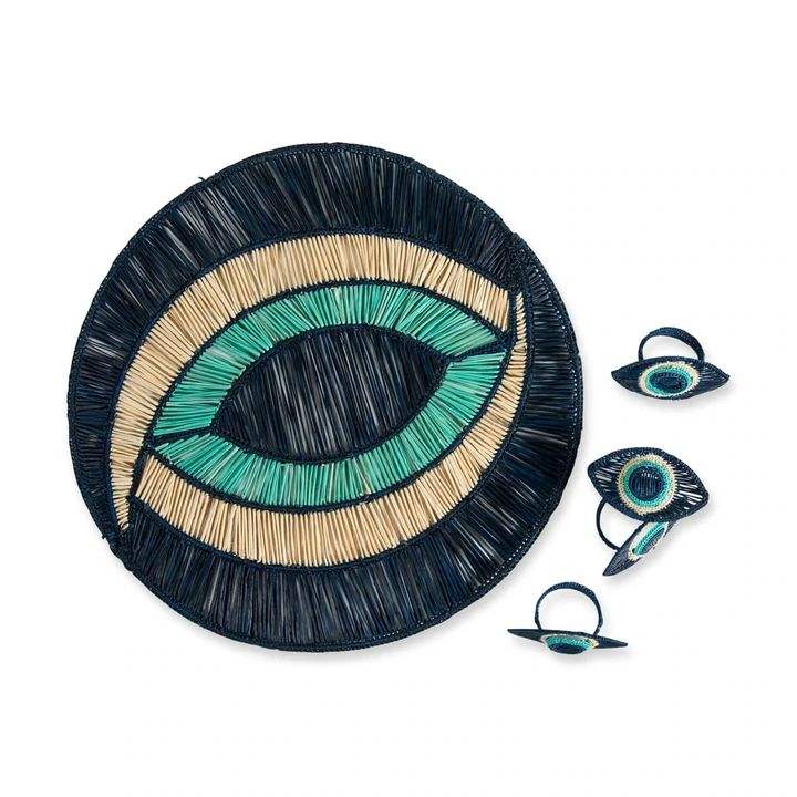 Ensemble de sous-verres en rotin œil porte-bonheur faits à la main, tapis de table tissé naturel, décoration de table bohème, dessous de verre protecteur, accessoire artisanal pour la maison