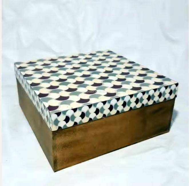 Boîte de rangement en bois poli écologique faite à la main avec incrustation en os, organiseur de luxe pour bijoux et accessoires, usage domestique
