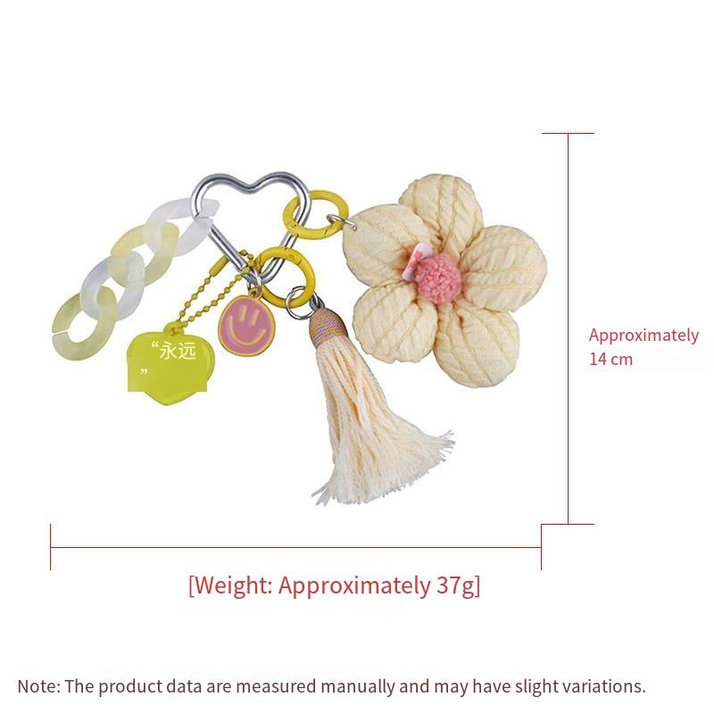 Porte-clés fleur en tissu fait à la main mignon fille sac pendentif Mini pompon porte-clés cadeau de vacances coeur porte-clés gland sac à main breloque