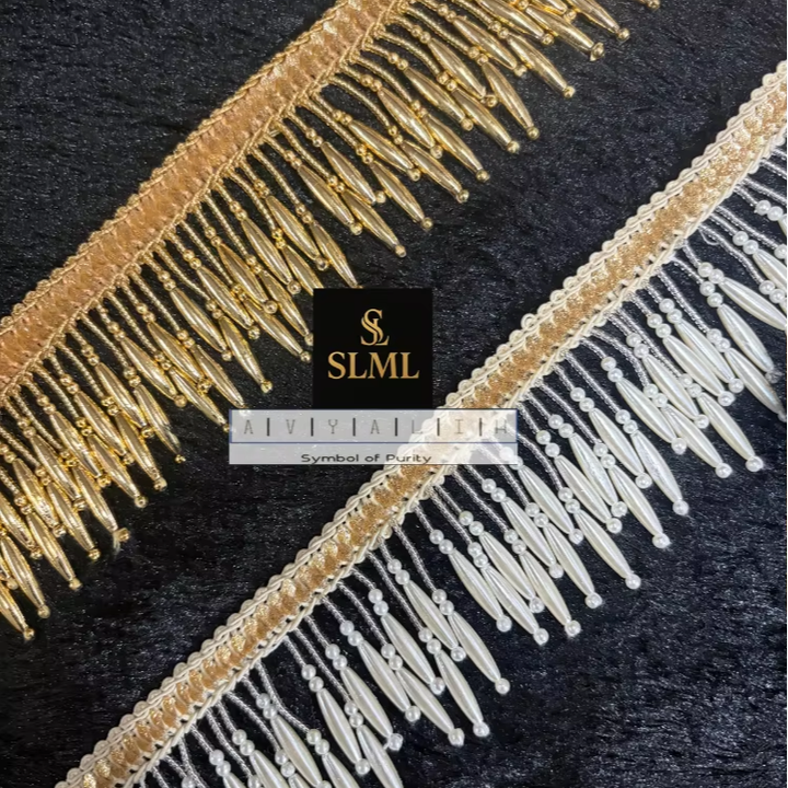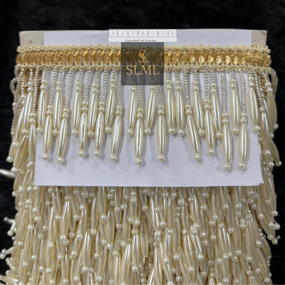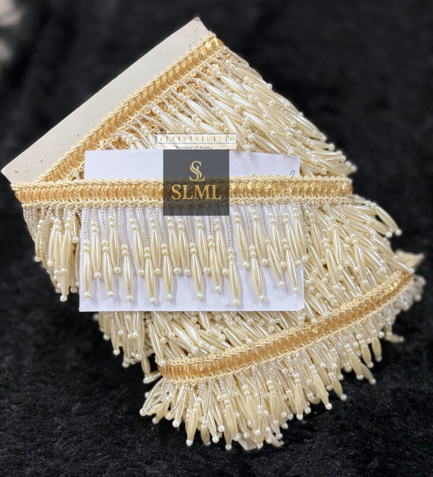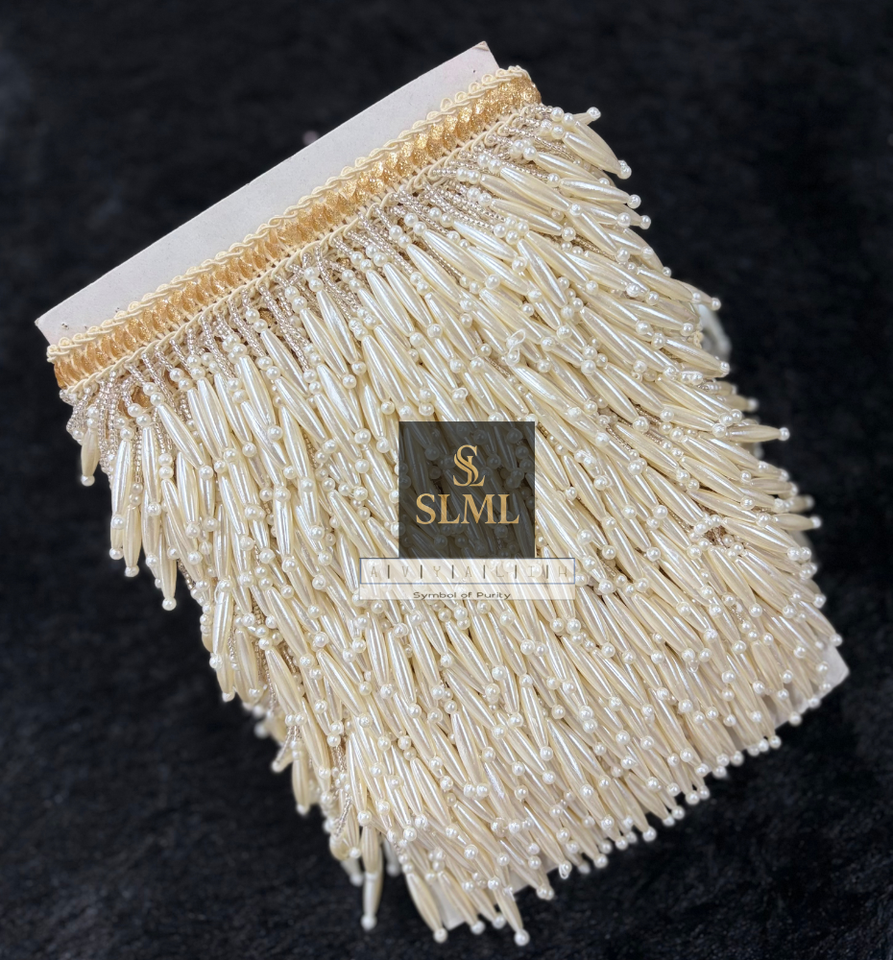 Perles brillantes de qualité supérieure, faites à la main, en forme de grappe, de couleur beige royal, avec franges tombantes, dentelle à suspendre pour robe de mariée, lehenga, sari, etc.