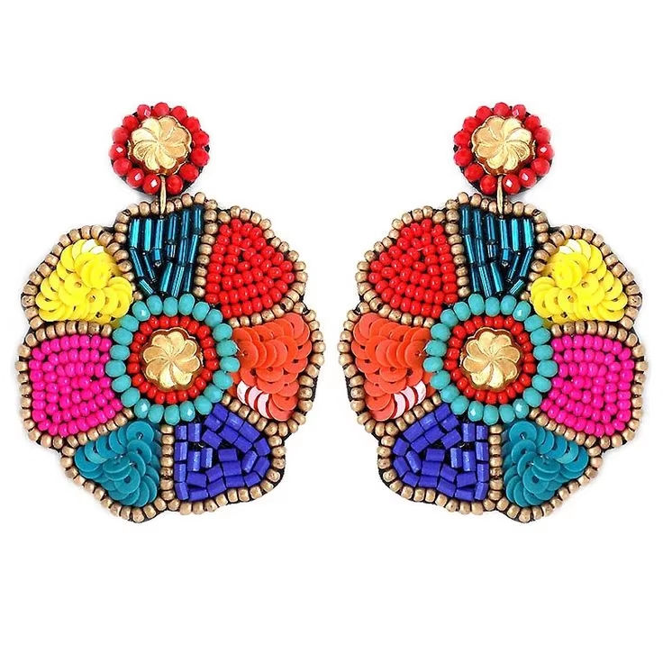 Boucles d'oreilles brodées de perles à la mode faites à la main au design multicolore fantaisie pour filles élégantes et femmes à la mode