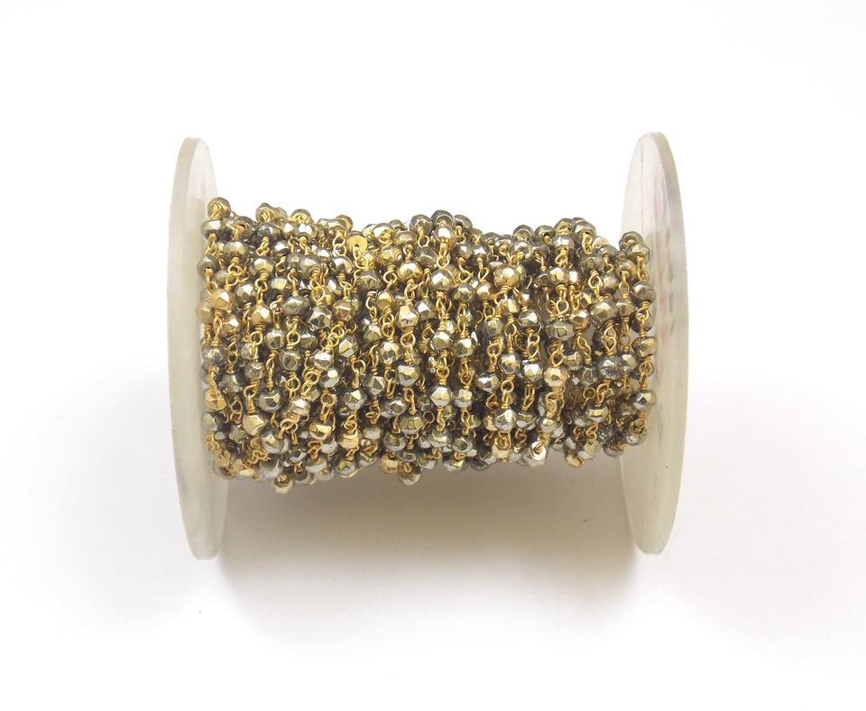 Matériel:Chapelet fait main en pyrite semi-précieuse avec plaqué or