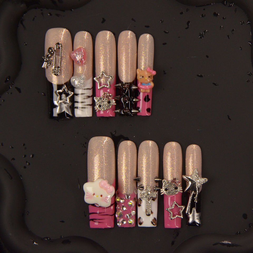 Faux ongles longs français faits à la main, tendance, couvrants, 10 pièces, en ABS, formes carrées, stiletto, papillon, longs motifs pour