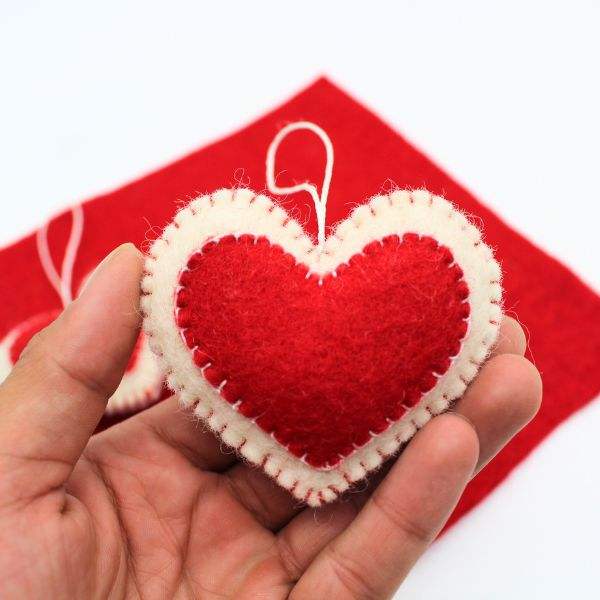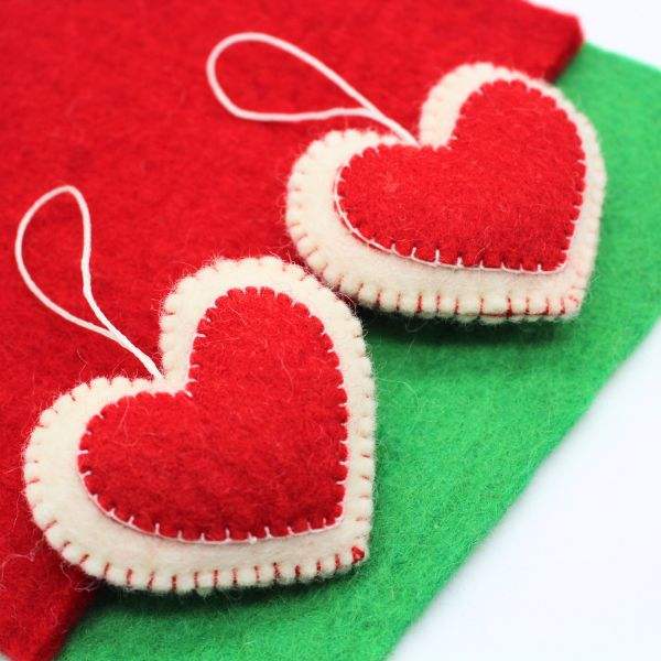 Handmade Felt Heart - Christmas Hanging Ornaments - Christmas Hanging Heart - Sustainable Home Decors - Eco-friendly Products