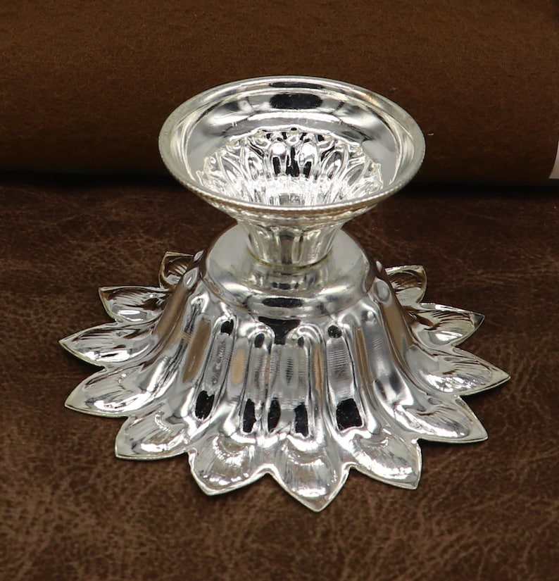 Lampe à huile en forme de fleur en argent fin faite à la main pour Noël et Pâques Deepak Diya Temple Ustensiles