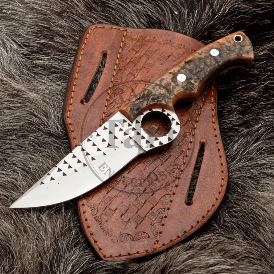 Couteau de chasse utilitaire à lame fixe fait main, acier D2, manche en bois, haute durabilité, garantie 3 ans, étui en cuir