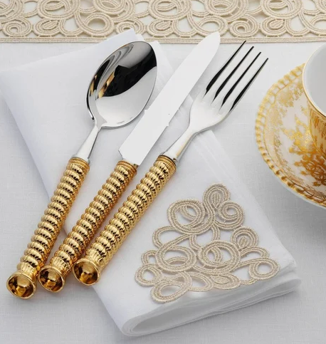 Couverts faits à la main cuillère fourchette événement fêtes restauration décoratif or en acier inoxydable outils de service