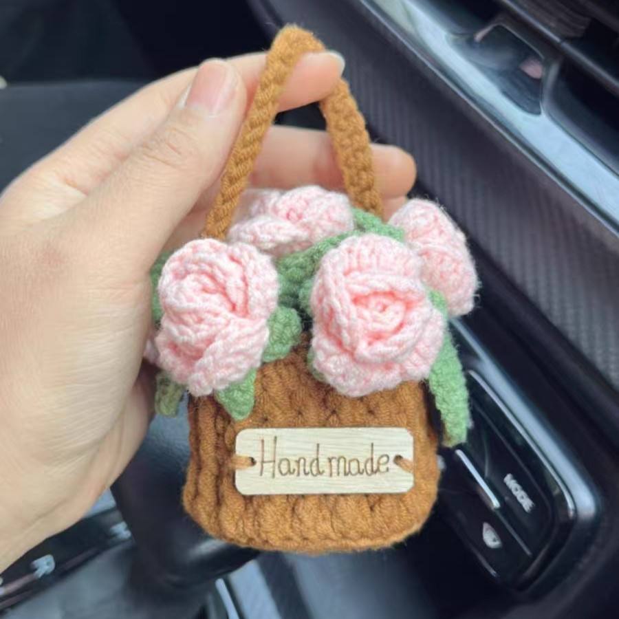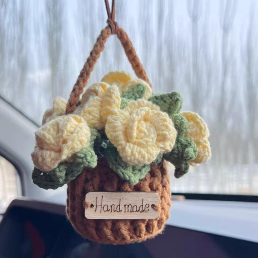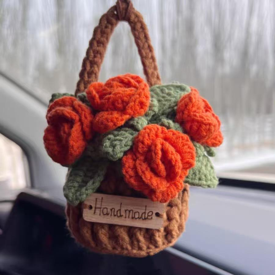 Fait à la main Floral Artificielle Plante Crochet Laine Suspendus Décoration Voiture Rétroviseur Cadeau