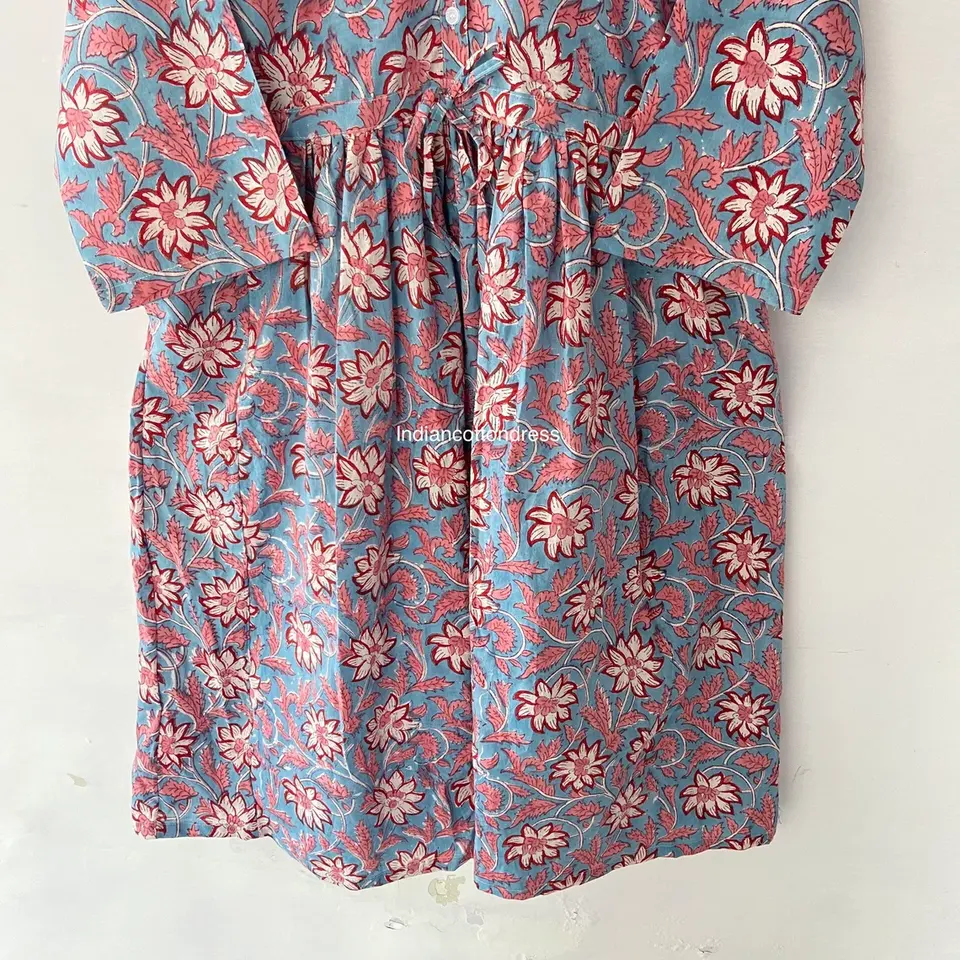 Robe en coton imprimé de blocs floraux faits à la main pour femmes Style doux volants taille naturelle 100% coton exportation qualité-Made India