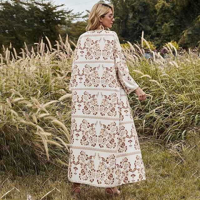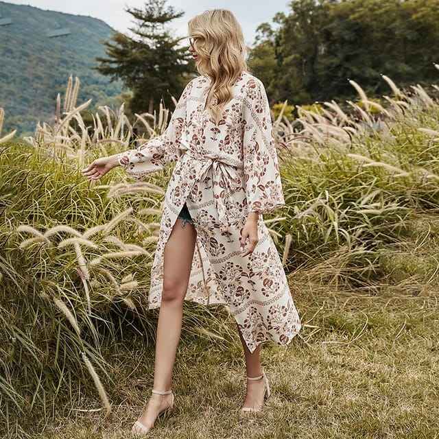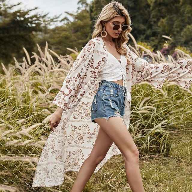Kimono en coton à imprimé floral fait à la main pour femmes, tissé écologique, style décontracté, vêtements de villégiature pour les vacances, les festivals
