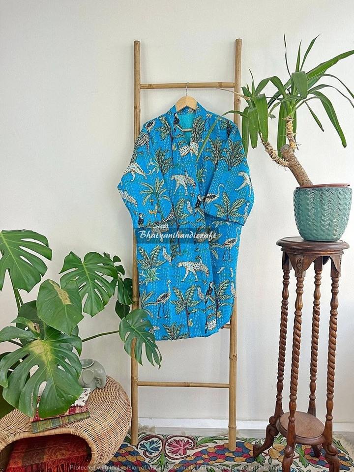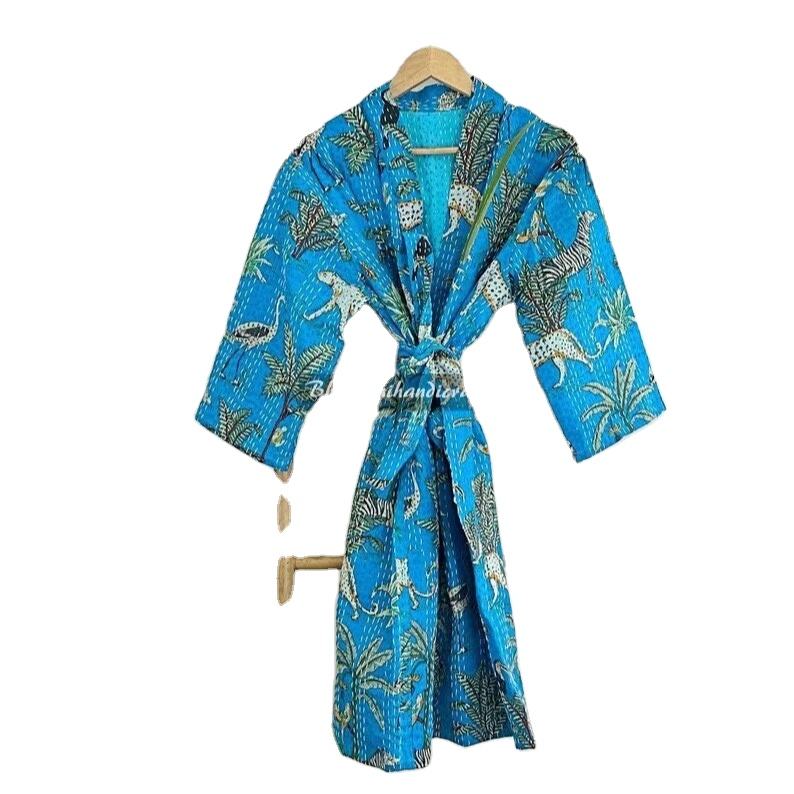 Robe bohème Kantha à imprimé floral fait à la main veste d'hiver pour dames nuit peignoir robe robe avec motif de lettre