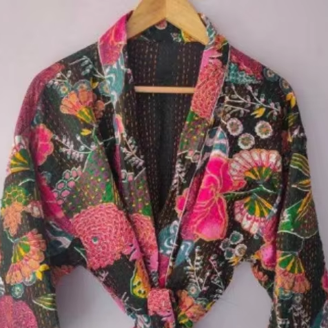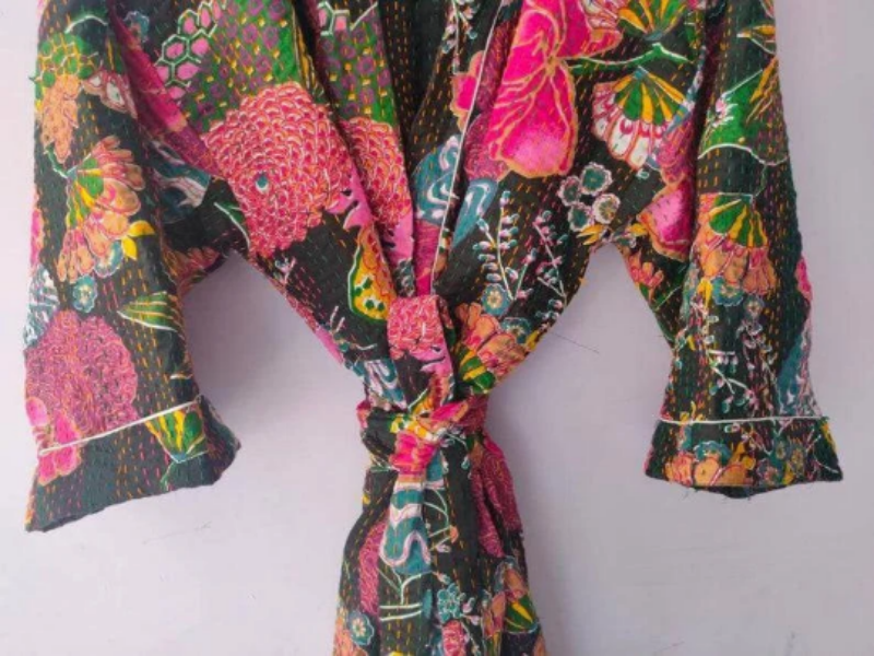 Veste Kantha à imprimé floral fait main Robe bohème d'été Manteau d'hiver Robe de bain pour dames Robe de bain de nuit