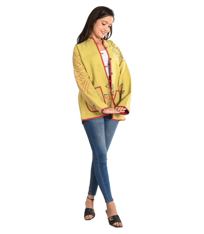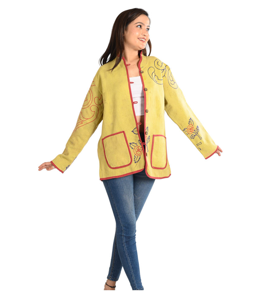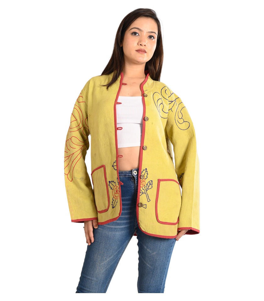Veste matelassée en coton imprimé floral fait à la main pour femmes manteau court d'hiver tendance avec décolleté 2 poches avant tissage tissé