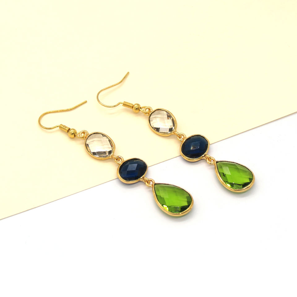Boucle d'oreille crochet multi-pierres