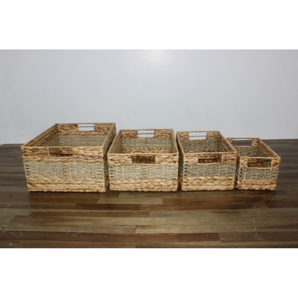 Product name:Set of 4 rect water hyacinth mix seagrass baskets