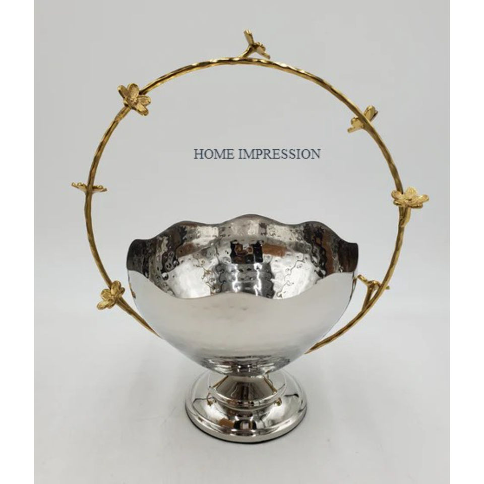 Bol à fruits fait main en acier inoxydable poli miroir fleur conception support en gros maison et cuisine bol décoratif