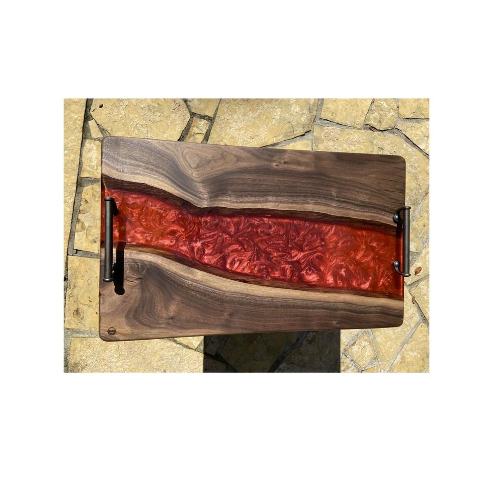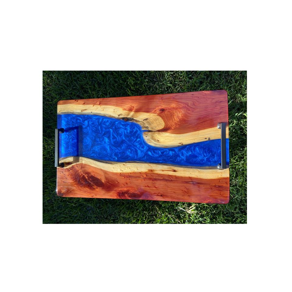 Plateau de service de fruits fait à la main en bois d'acacia naturel et plateau de service en résine de haute qualité à bas prix pour Offre Spéciale