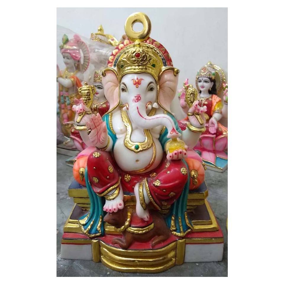 Statue en marbre blanc Ganesh faite à la main motif unique en marbre multicolore paquet pour occasion spéciale artisanat à la main pierre blanche