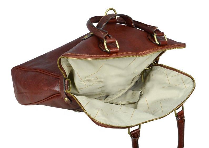 Sac à dos convertible en cuir véritable fait main, sac fourre-tout pour homme et femme, bandoulière, poignée supérieure, Charlotte TRE-0059