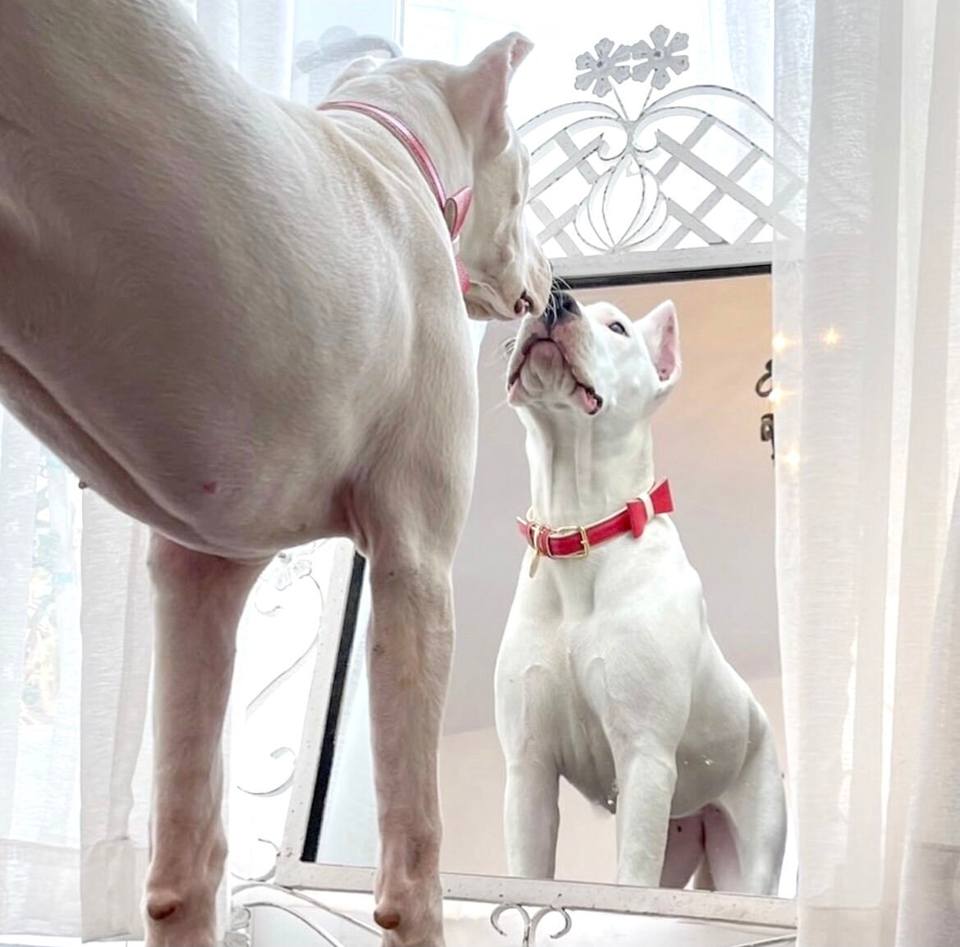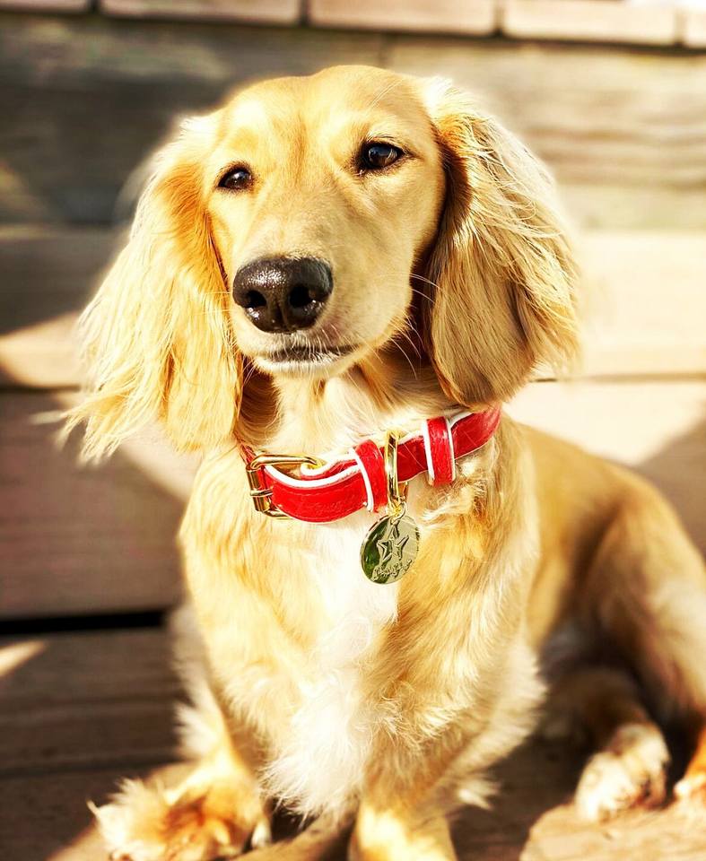 Collier de chien en cuir véritable fait à la main Petits et grands chiens élégants | Cadeaux au design doux de haute qualité pour animaux de compagnie-Rouge | Ivoire