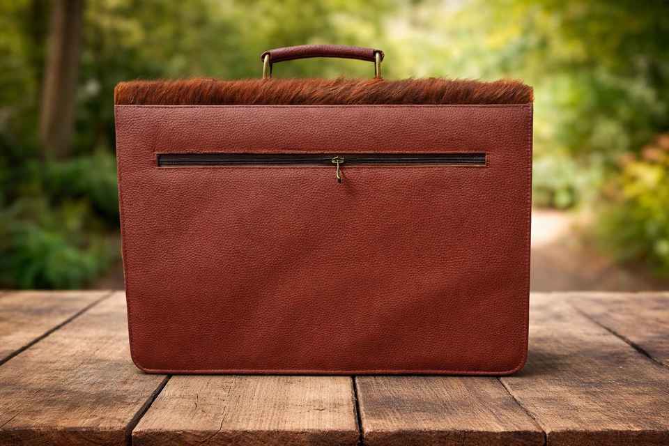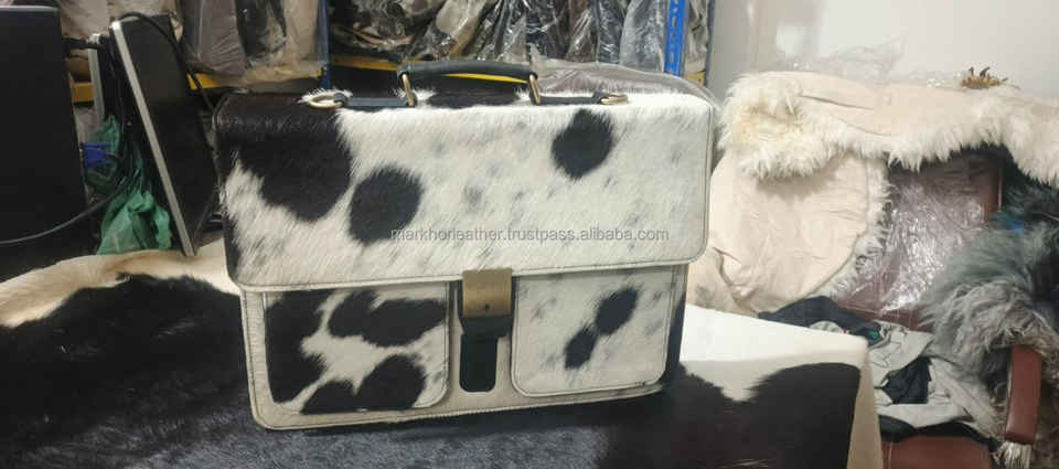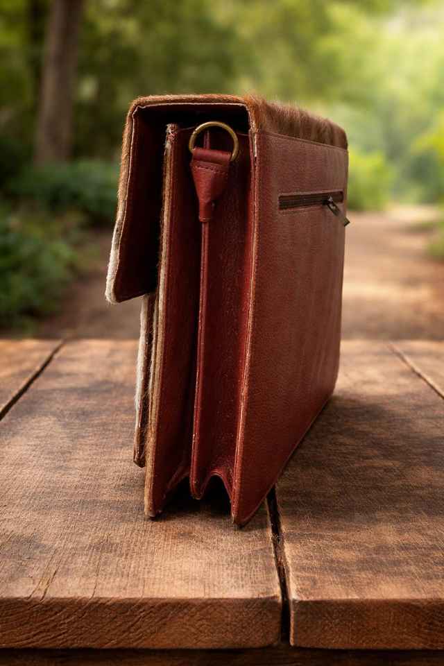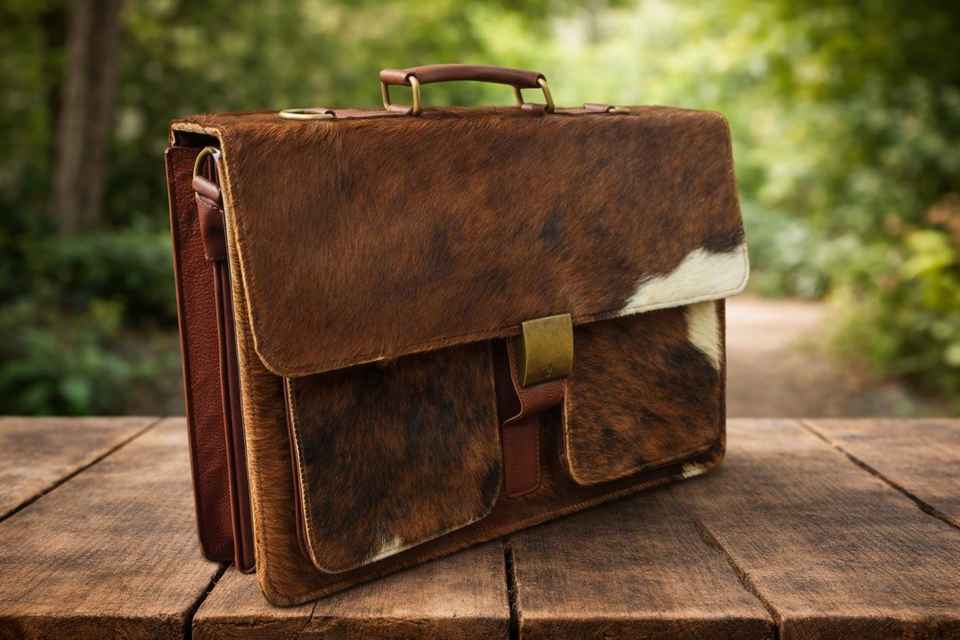 Sac Messager pour Ordinateur Portable en Cuir Véritable Fait Main, Style Vintage, en Peau de Vache avec Poils, Personnalisable LPBH-0004