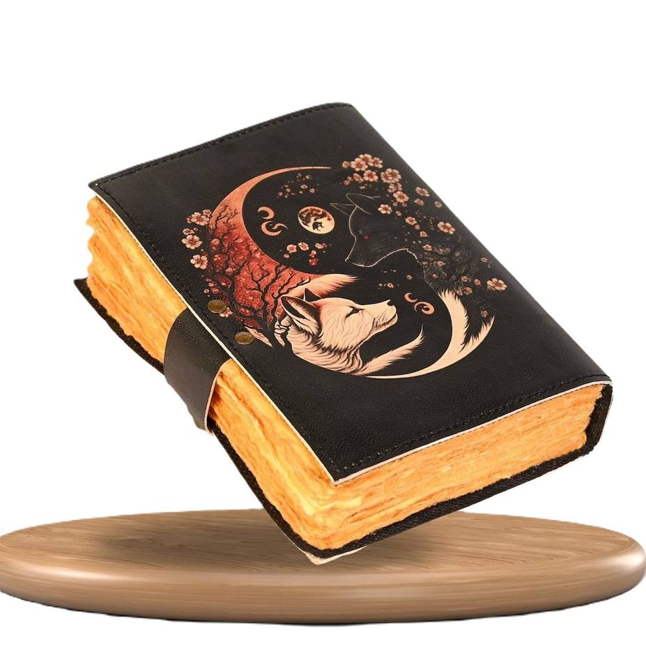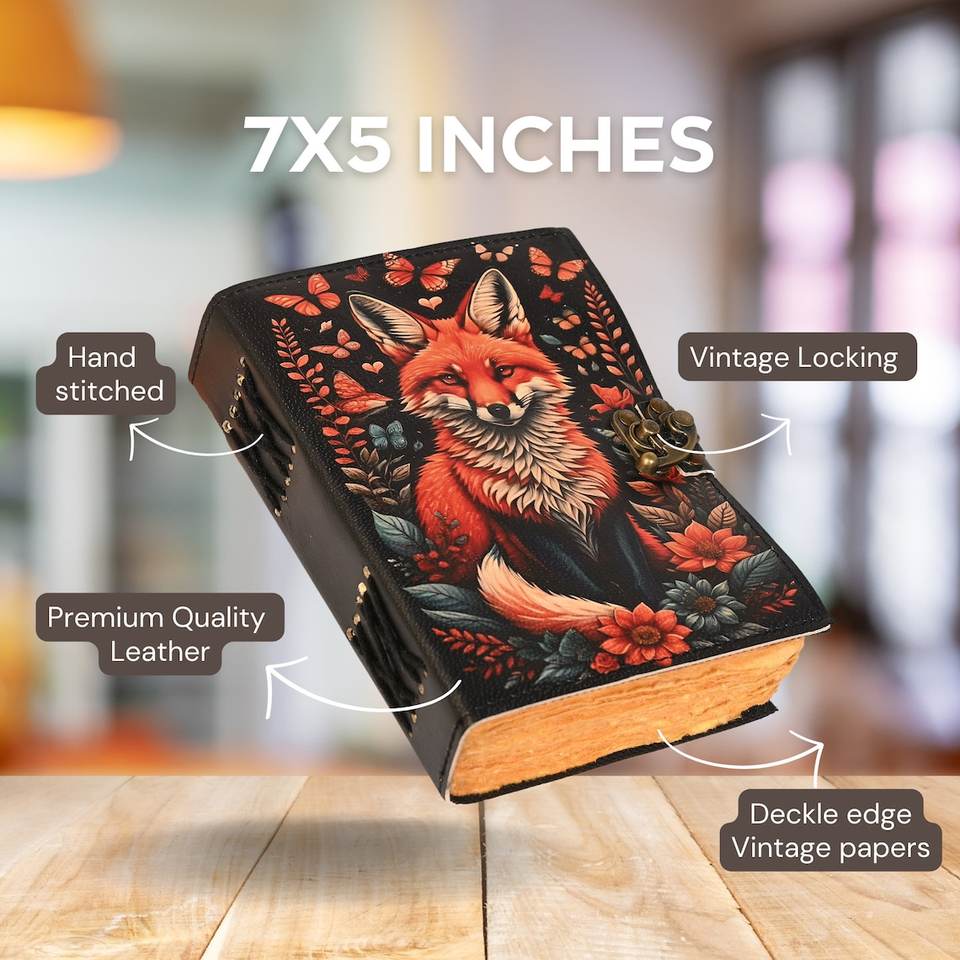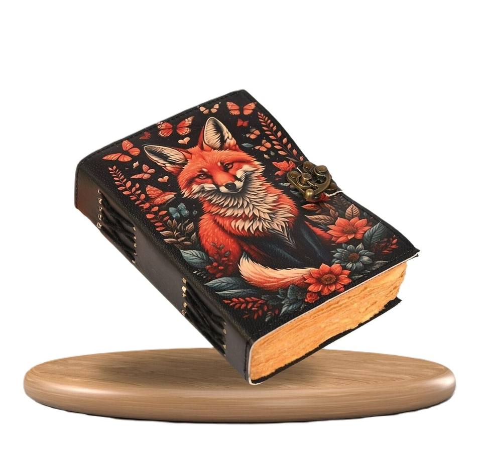 Journal en cuir véritable fait à la main Journal en cuir imprimé renard avec papier de bord de pont C-Lock fermeture Journal Grimoire pour cahier