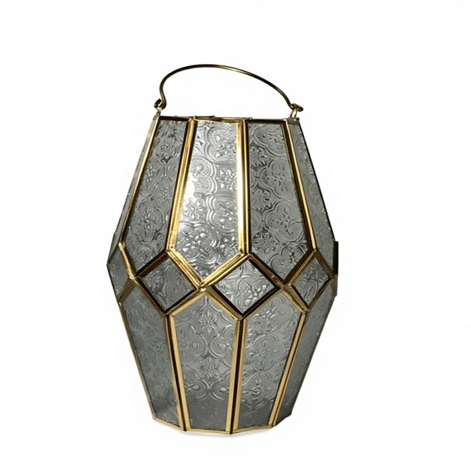 Lanterne porte-bougie en verre géométrique faite à la main avec cadre en métal doré et verre, design moderne pour la décoration de la maison, Noël