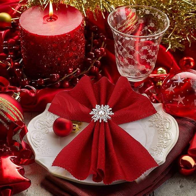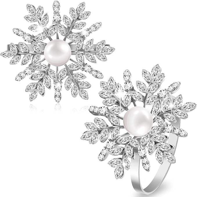 Rond de serviette en argent allemand fait à la main Rond de serviette en strass Flocon de neige pour décoration de fête Table à manger Décor de table de tous les jours