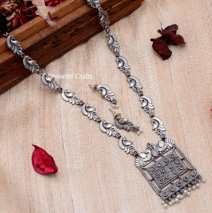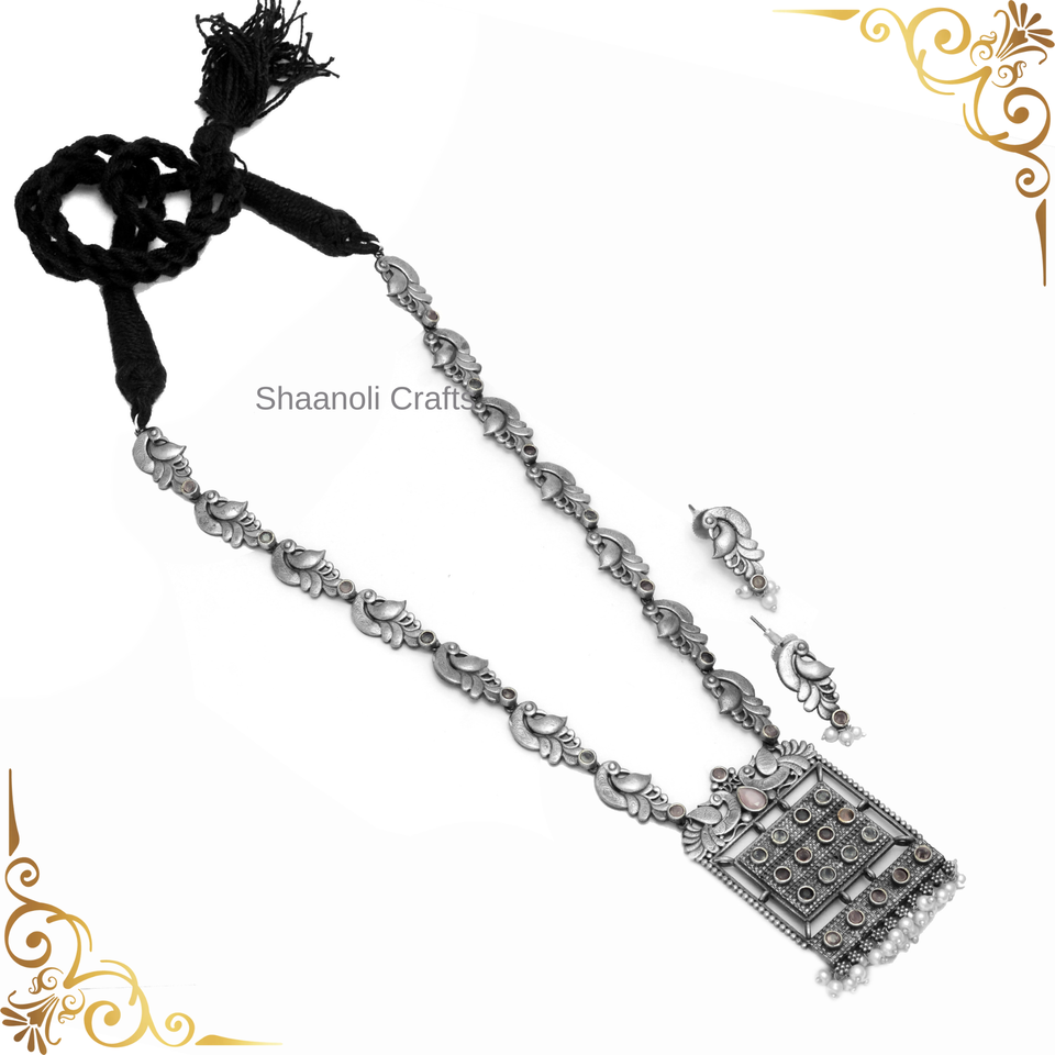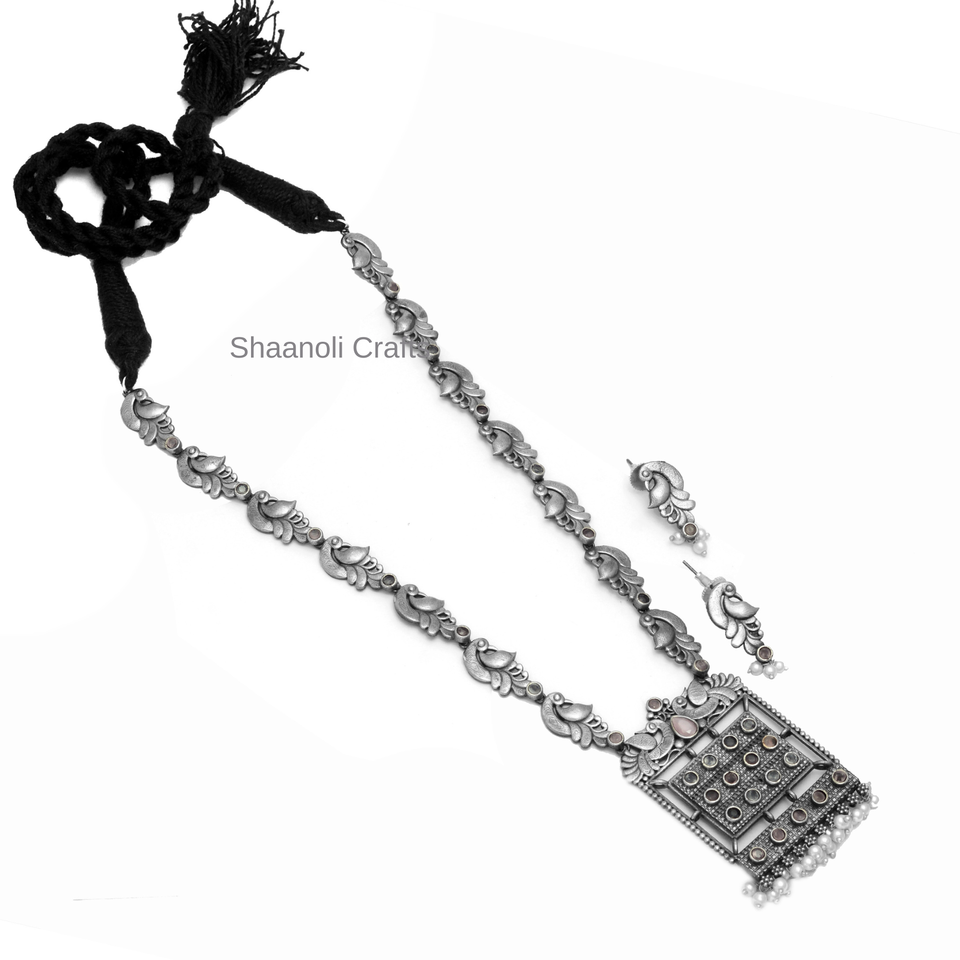 Collier Long de Style chaîne paon en argent fait à la main avec boucles d'oreilles