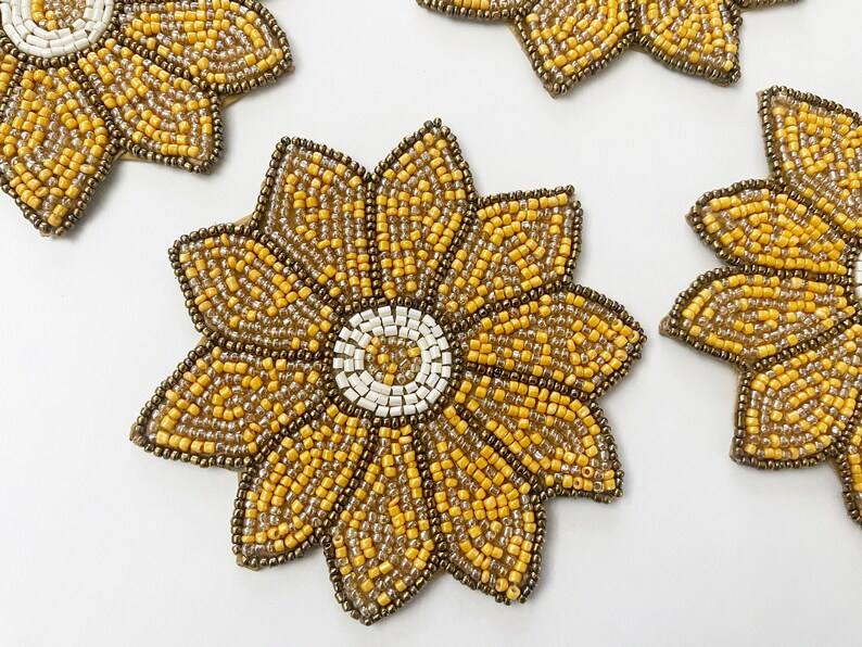 Sous-verres en perles de verre faits à la main-Sous-verres classiques portables pour église et cadeaux religieux avec support en polyester (4x4 pouces)