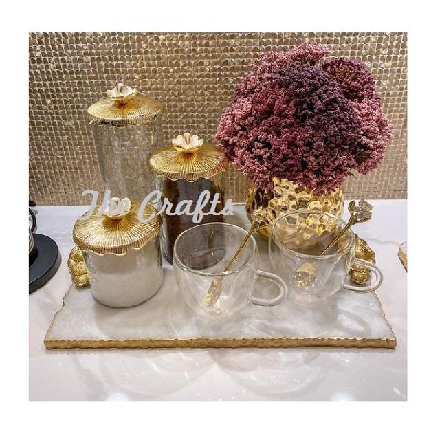 Ensemble de pots en verre faits à la main avec un design en feuille d'or et un couvercle en marbre en relief, boîte de rangement pour friandises sucrées