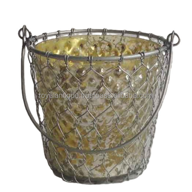 Bougeoir en verre fait à la main Bougeoir votif Filet en métal fini à prix réduit par le fabricant indien