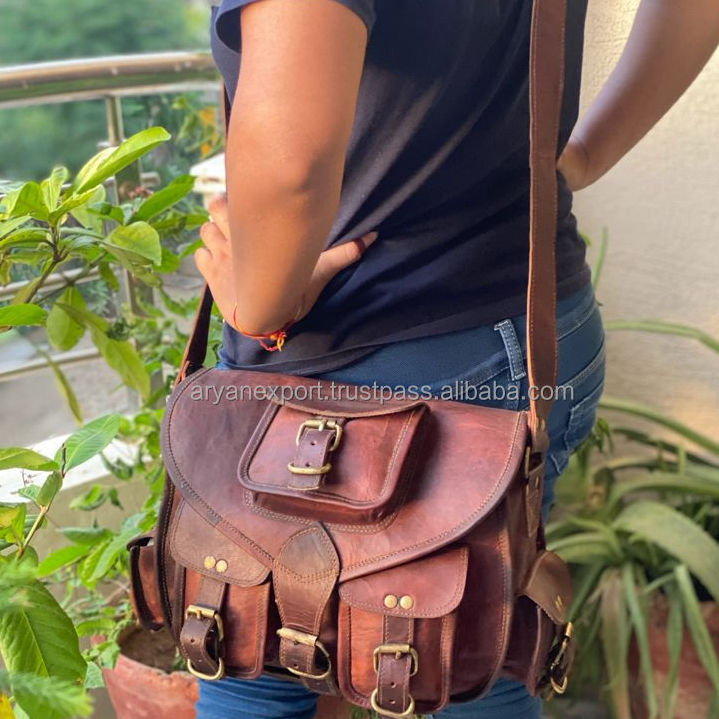 Sac à main à bandoulière en cuir de chèvre naturel, de couleur marron, décontracté, pour femmes, 10*13 pouces,