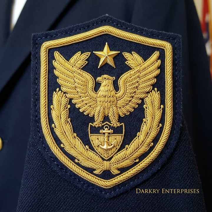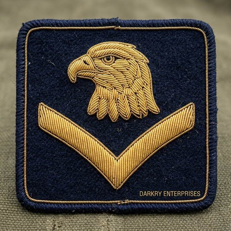 Écusson brodé fait main en fil d'or, motif étoile d'aigle et couronne, forme bouclier personnalisée, pour costumes, vestes et accessoires vestimentaires