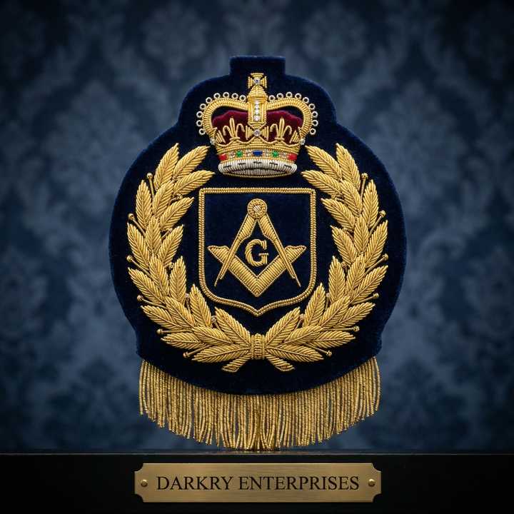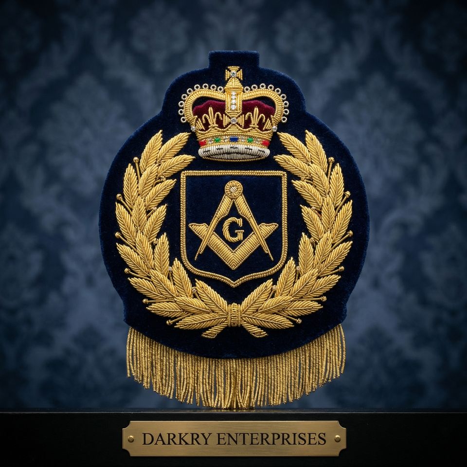 Écusson de blazer en velours brodé sur mesure, fait main, avec fil de lingot d'or, compas carré, badge maçonnique, franges et emblème cérémoniel