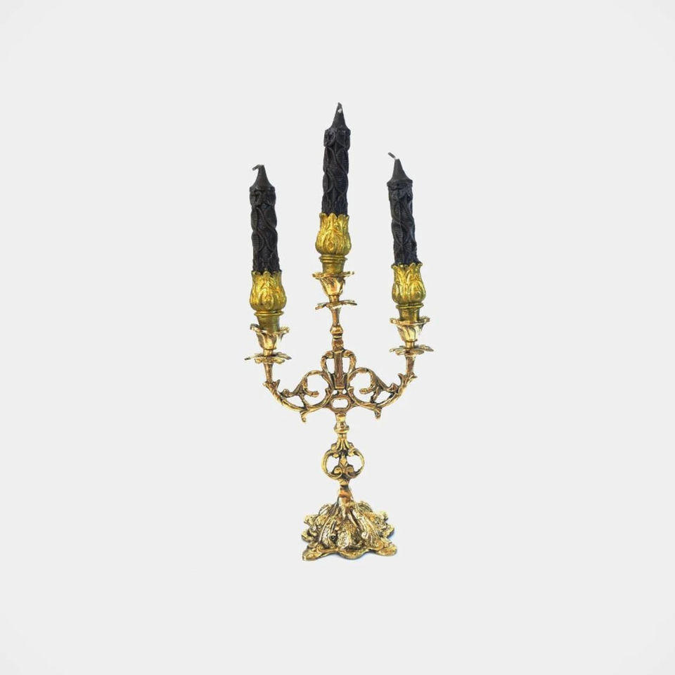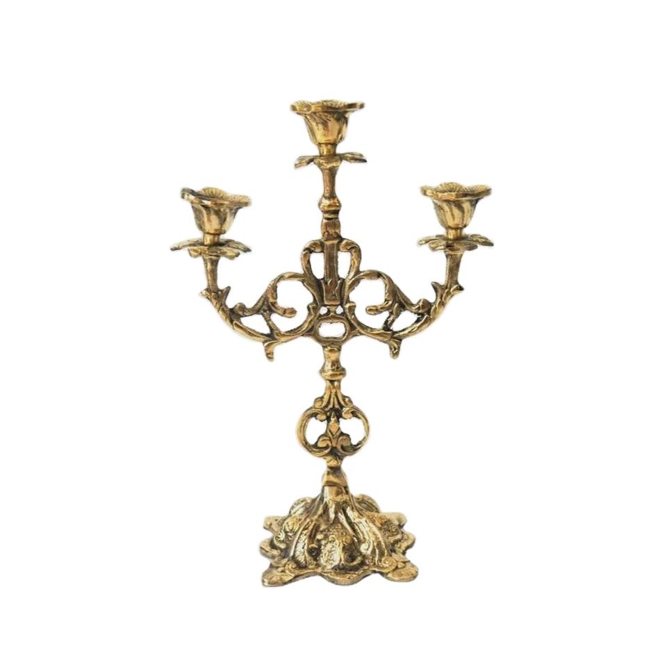 Bougeoir vintage à 3 bras, couleur or, fait à la main, bougeoir de mariage d'église, fournitures de table